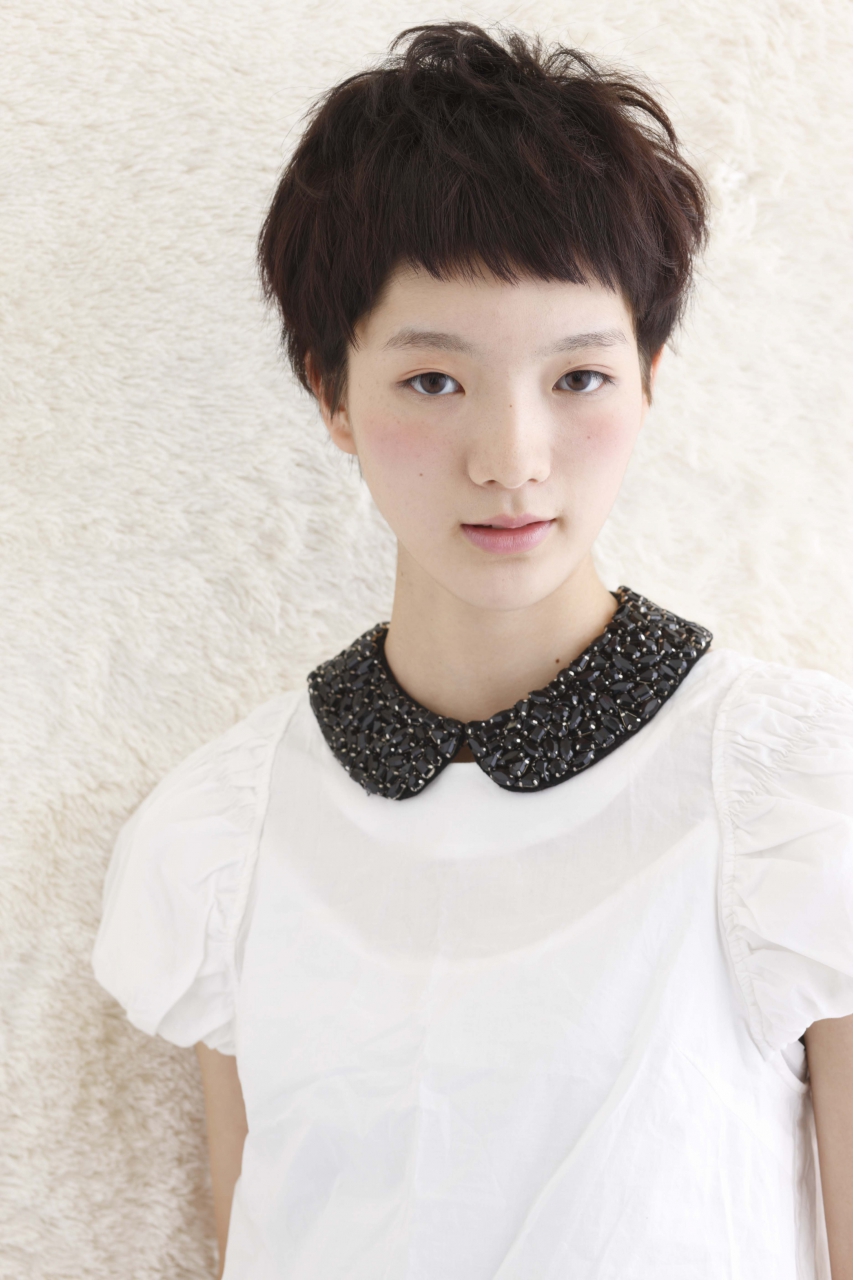 丸いフォルムのベリーショート。ダークピンクで控えめなカラーもかわいい☆