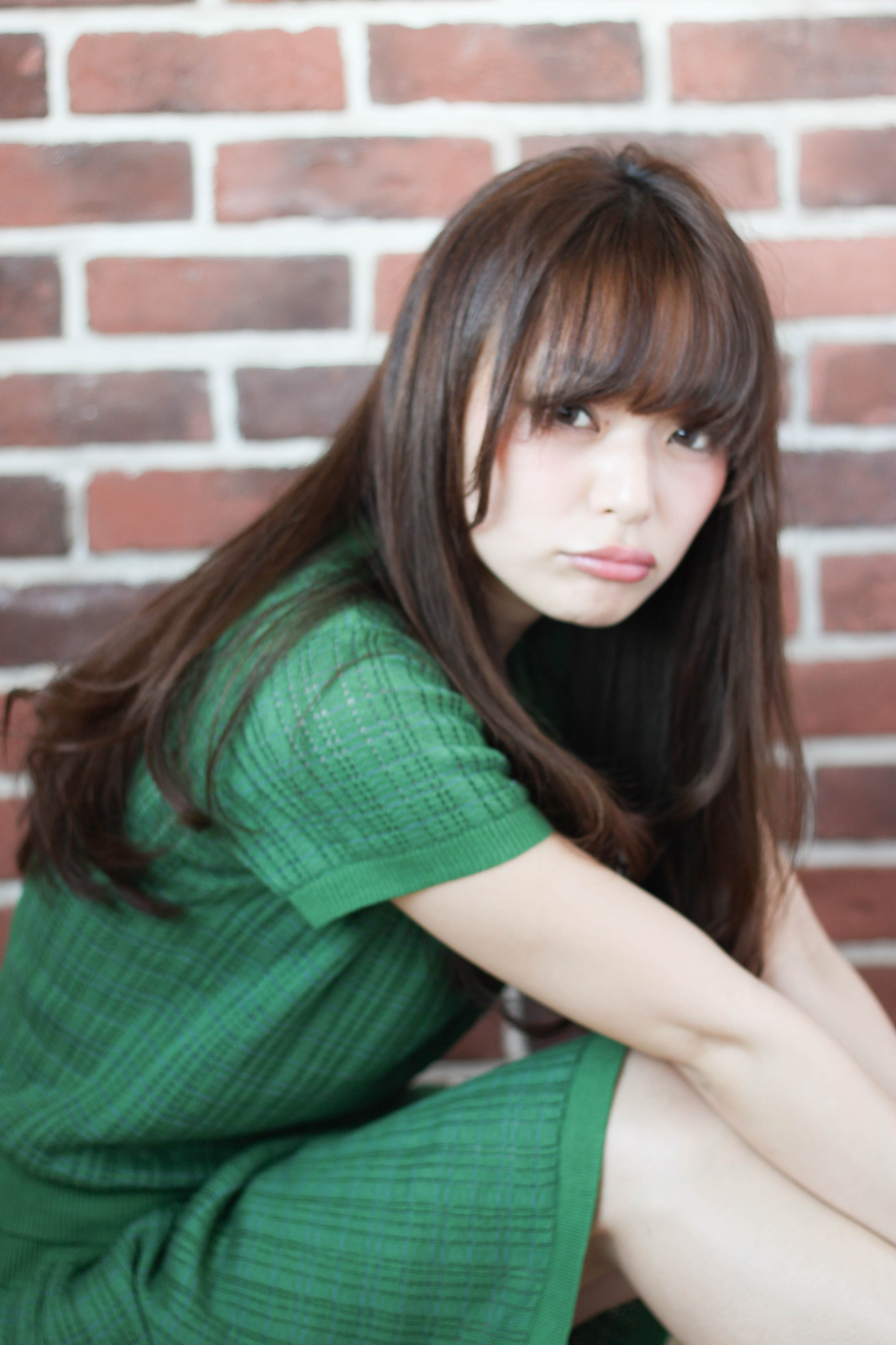 全体はおさまりのよいローレイヤースタイル、ゆるカールが無造作感とかわいいだけじゃない大人グラム感を。ふんわり柔らかな大人かわいいロングです。重めバングでほつれたくせ毛風エアリーカールの小顔大人かわいい甘辛フレンチガーリー!