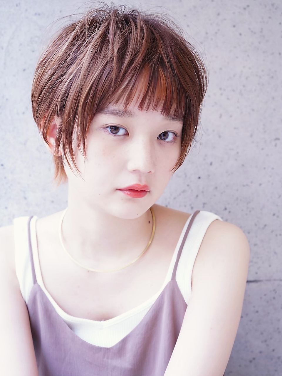 オン眉バングがかわいいショートスタイルです!タイトにまとめてミニマムスタイルに☆